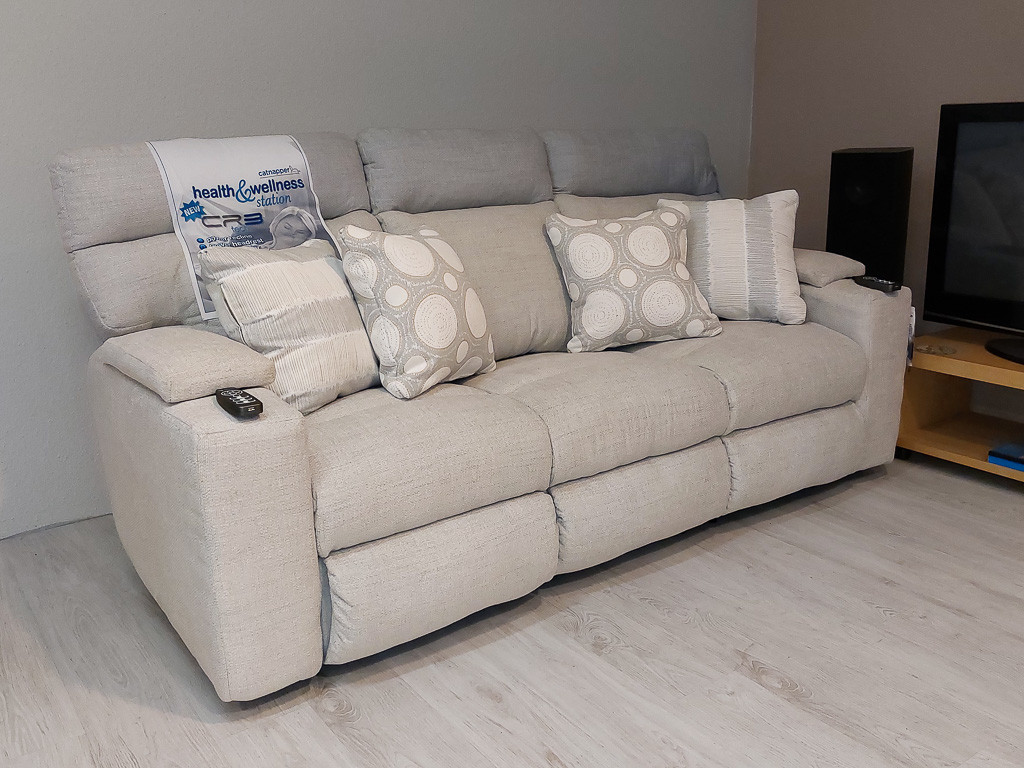 A Sanctuary wellness kanapé további extra funkciója, hogy a hogy a fix állású középső ülés háttámlája előre dönthető, hogy italtartós kis asztalként szolgáljon. A kis asztalra helyezhetjük az italt, a rágcsálnivalót vagy az éppen olvasott könyvet, valamint a TV távirányítóját.
